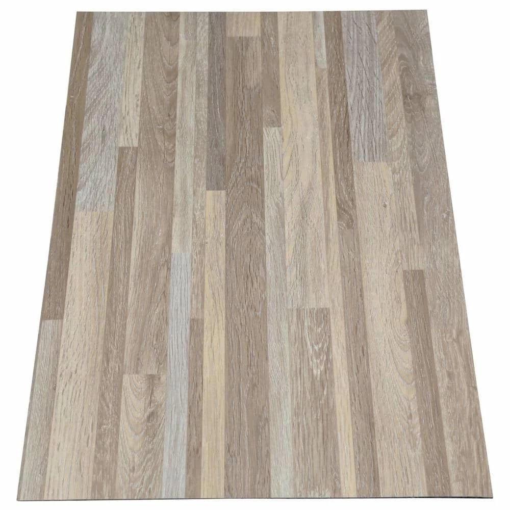 Give your floors a touch of creativity with TrafficMASTER Taupe Banded Wood, the newest peel and stick flooring exclusively from The Home Depot. It is thick and durable and can be used in all areas of the house. It also is suitable for some commercial uses. It contains none of the chemical phthalate, so it meets medical and infant toy regulations.